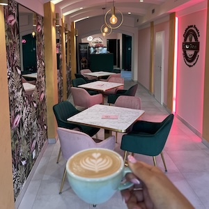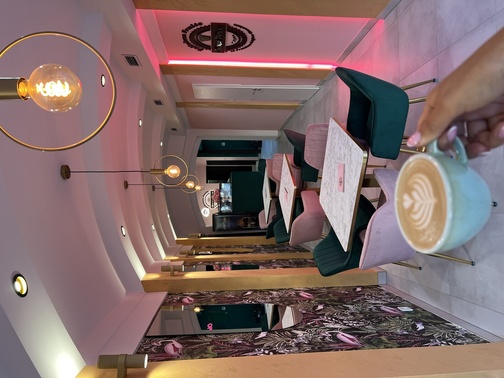 Oči jedí první – Při vstupu do našich krásných prostor vás okouzlí nejen sladká vůně, ale i jedinečný moderní design ve smaragdovo-růžových barvách. Celá kavárna je dokonalým místem pro fotky, kterými se chce každý zákazník pochlubit na sociálních sítích – s úsměvem, nadšením a stylem.