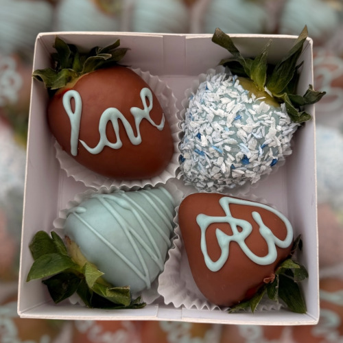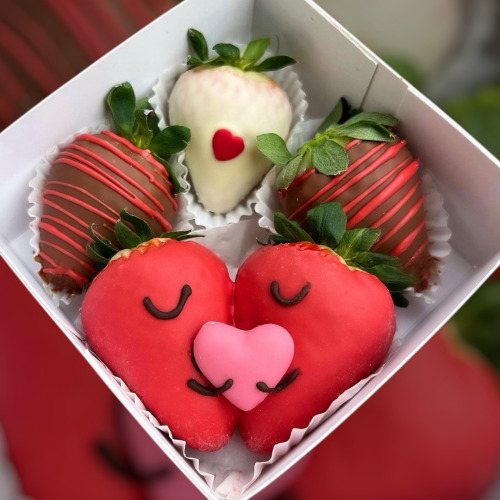 V bonboniéře je 8-10 ks jahod a srdíčko s nápisem Miluji Tě.