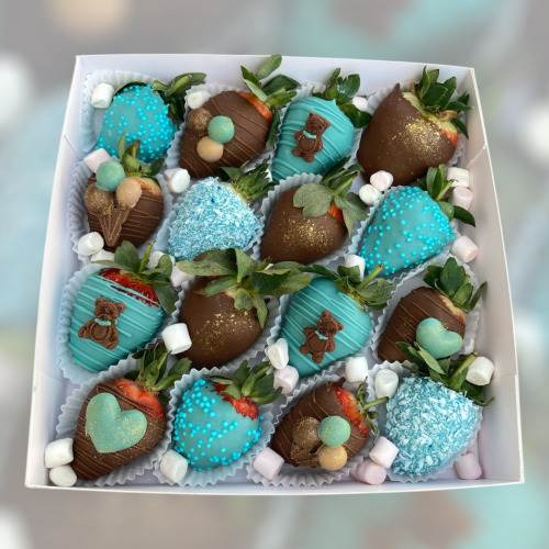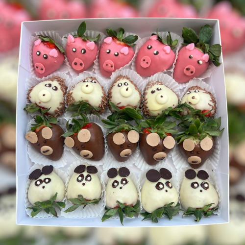 V bonboniéře je 16-20 ks jahod a čokoládovými mini medvídky.