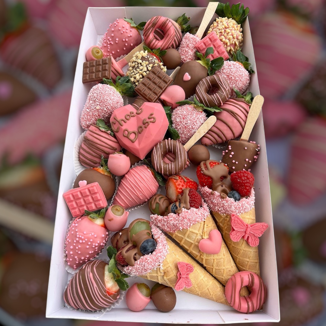 Love box obsahuje 10 ks hroznů, 5 ks mini banánů, 15-20 ks j...